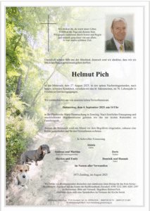 Unser Kollege Helmut Pich ist am 27. August 2025 im 76. Lebensjahr verstorben.